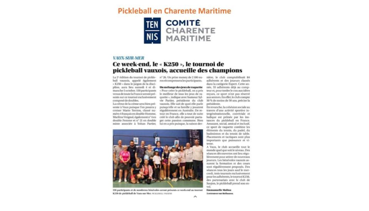 Tournoi de Pickleball K250 des 4 et 5 octobre 2025 à Vaux